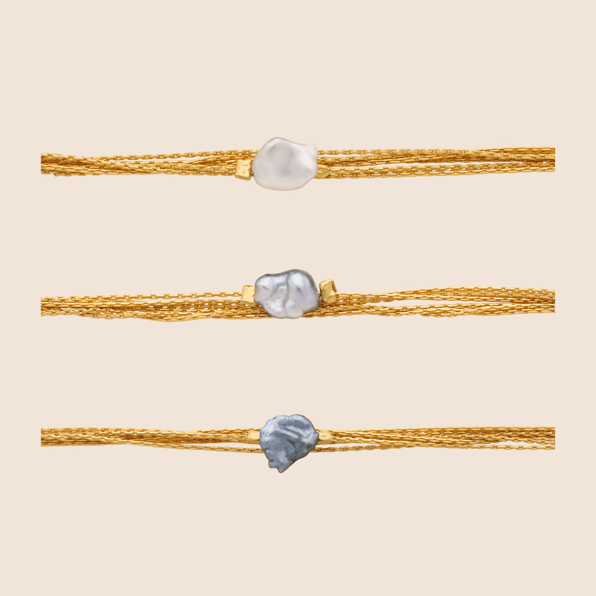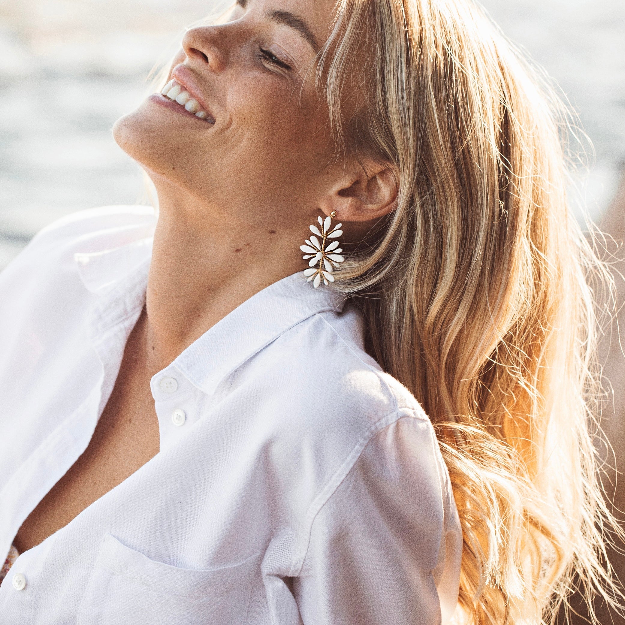 Semées autour d’un fil précieux plaqué or 24 carats se découvrent d’exquises petites fleurs et étamines d’un blanc immaculé.