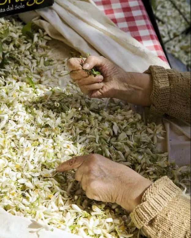Sur les côtes de la Méditerranée, la fleur d’oranger est omniprésente visuellement d’abord dans l’architecture avec ses fresques en céramique et dans l’air avec ces odeurs merveilleuses de Néroli ou les gourmandises à la fleur d’oranger.