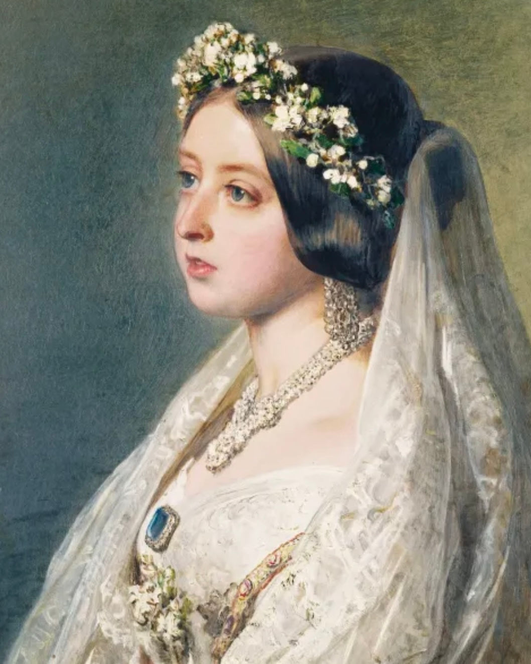 Popularisée par la reine Victoria qui portait pour son mariage l'emblème de la Méditerranée, la fleur d'oranger, cette tradition a conquis toutes les futures mariées du bassin méditerranéen et d'Angleterre entre 1840 & 1920.