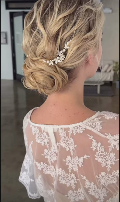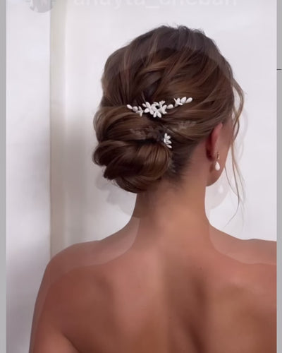 Tous nos peignes et couronnes se fixent à l'aide d'épingles à chignon ou de barrettes invisibles présentes dans la trousse de votre coiffeuse.