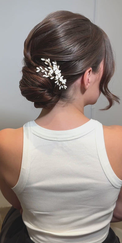 Tous nos peignes et couronnes se fixent à l'aide d'épingles à chignon ou de barrettes invisibles présentes dans la trousse de votre coiffeuse.
