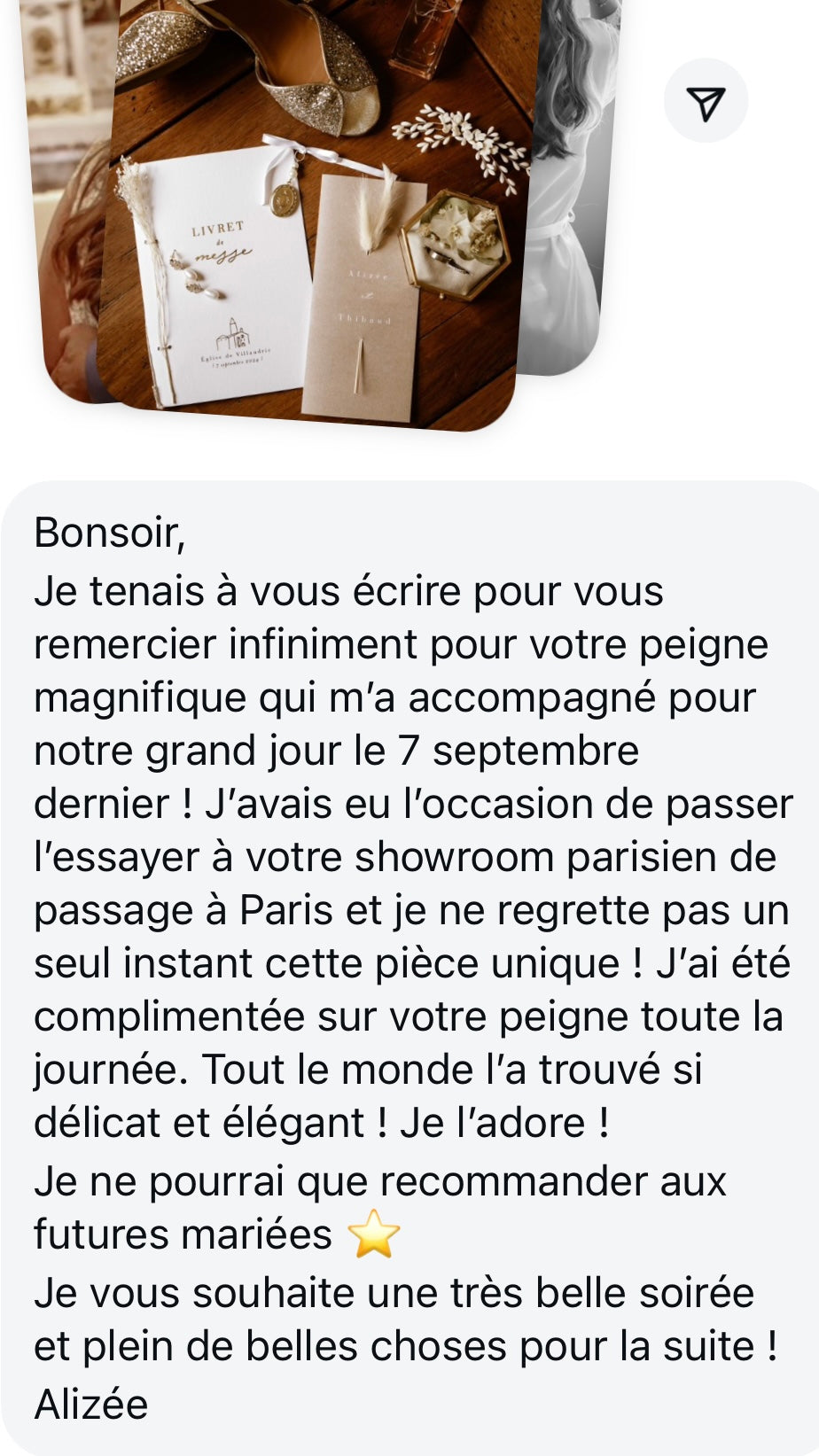 « Que ce soit pour habiller une silhouette du quotidien ou transcender une robe de mariée, les parures Maison Massillon sont des objets de fascination dessinés pour tutoyer la grâce l’espace d’un instant.»